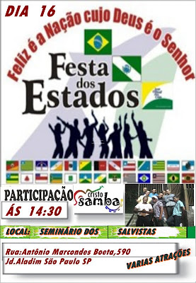 SÁBADO, 16, NA FRATERNIDADE JESUS SALVADOR TEREMOS A FESTA DOS ESTADOS